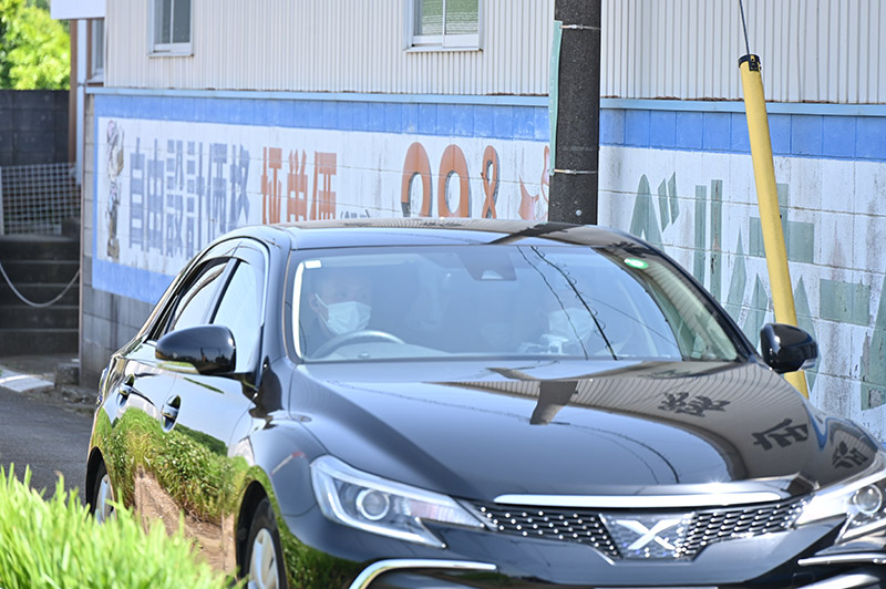 容疑者を乗せた車両=20日午後1時55分ごろ、船橋市夏見台