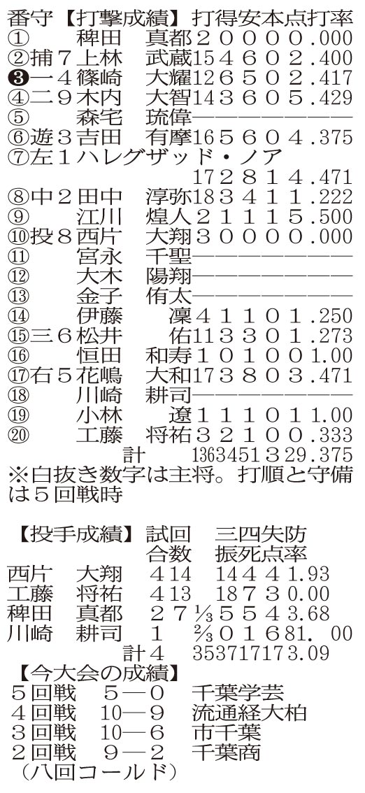 #高校野球#第105回全国高校野球選手権千葉大会 #習志野市#船橋市 2023/7/21 5:00 (4/15 14:09更新) 有料記事 保存 連覇が懸かる市船橋... この記事は 有料記事です 残り305文字(全文315文字) 関連記事/あわせて読みたい 7月20日の記事一覧 千葉の高校野球 2023年シーズン特設ページ ▶千葉大会の写真サイト閲覧パスワード発行はこちら(関係者対象) ▶試合速報はこちら 【写真特集】房総球児、熱闘の軌跡 #高校野球#第105回全国高校野球選手権千葉大会 #習志野市#船橋市 前の記事【準々決勝の見どころ】実力伯仲8強いざ 第105回全国高校野球 千葉大会次の記事千葉商大付、勝負強くミラクルも 木更津総合、攻守スキなし総合力 21日、千葉商大付VS木更津総合 第105回全国高校野球 千葉大会