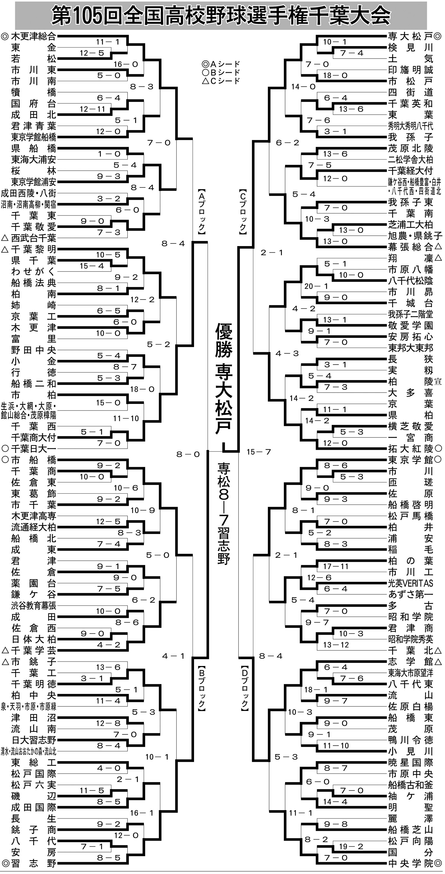 #速報#高校野球#第105回全国高校野球選手権千葉大会 #千葉県 2023/7/27 1:35 (4/15 14:09更新) 有料記事 保存 第105回全国高校... この記事は 有料記事です 残り472文字(全文482文字) 関連記事/あわせて読みたい 10年後にも"新マリン" 球場築30年以上、改修・建て替え両面で千葉市検討 <高校野球 専大松戸V> 本紙号外3000部を配布 <高校野球 専大松戸V> 電子号外はこちら ▶千葉大会の写真サイト閲覧パスワード発行はこちら(関係者対象) ▶千葉の高校野球 2023年シーズン特設ページ #速報#高校野球#第105回全国高校野球選手権千葉大会 #千葉県 前の記事最後の夏、決勝でマネジャーも奮闘 放送委員・玉川さん 記録員・平山さん 第105回全国高校野球 千葉大会 最終日次の記事7月27日(決勝)の記事一覧 第105回全国高校野球 千葉大会 最終日