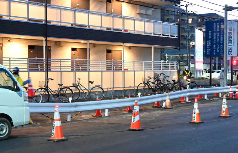 千葉県は12日、習志野市鷺沼1の国道14号に埋設されている下水道管で漏水が確認され、管理する同市の応急対策工事実施に伴い、国道の一部区間を片側交互通行規制とした。規制期間は対策工事が完了するまでで、県は迂回(うかい)路の利用を呼びかけている。