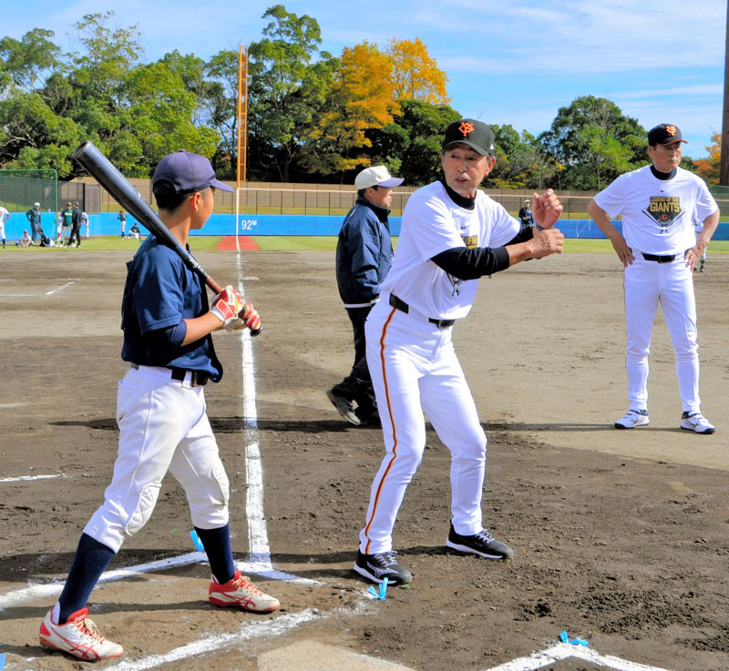 プロ野球巨人の終身名誉監督で、今年6月に亡くなった「ミスタープロ野球」こと長嶋茂雄さんの名を冠した少年野球教室が1日、出身地の佐倉市の長嶋茂雄記念岩名球場で開かれた。巨人往年の名選手11人が講師となり、全員背番号「3」を着けて地元球児に熱烈指導。「長嶋さんのような大スターに」と期待を寄せた。
