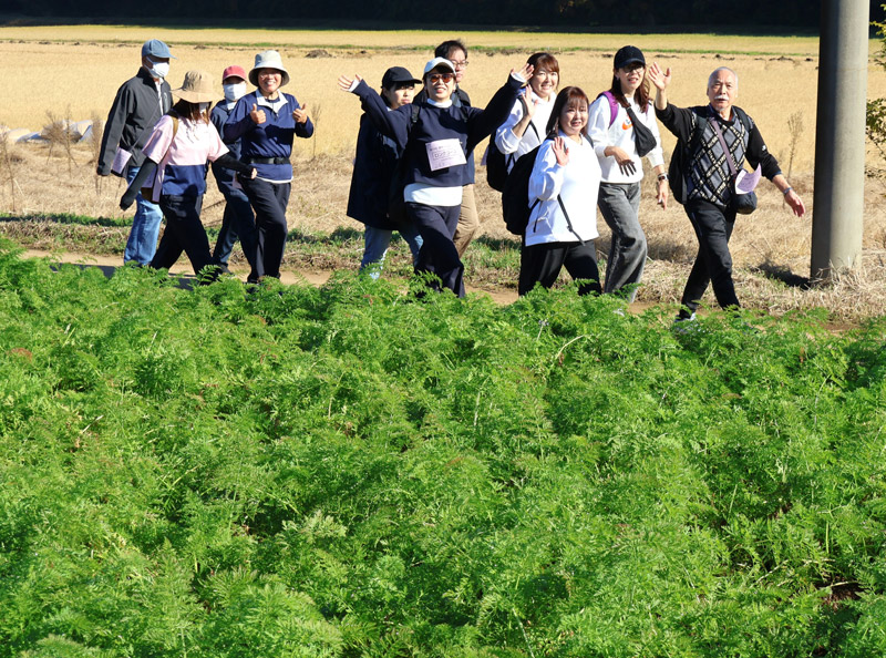 全国有数のニンジン産地として有名な富里市で22日、ニンジン畑や史跡、紅葉などを眺めながら歩くウオークイベントが開かれた。10キロと6キロのコースがあり、市内外から224人が参加してにぎわった。