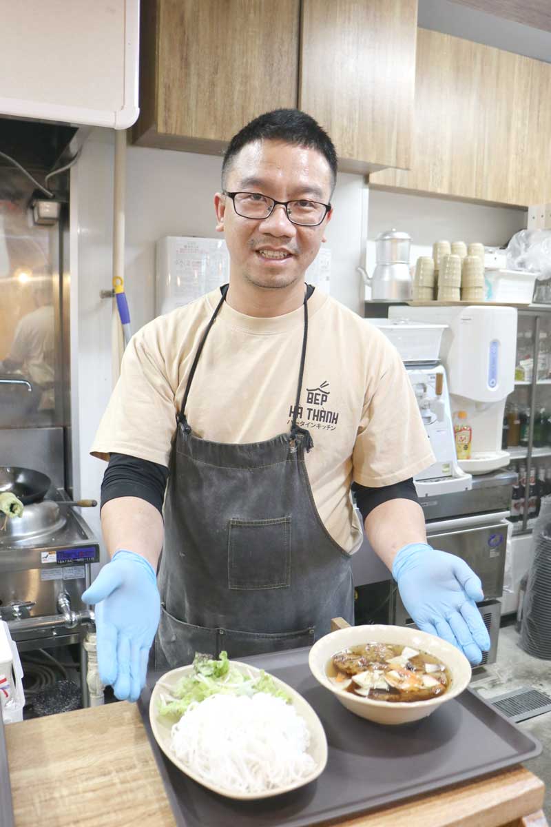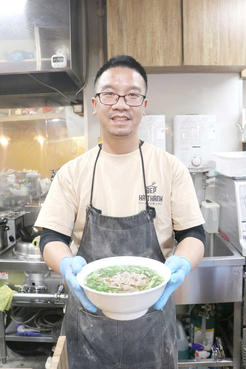 松戸市のJR北小金駅近くにあるベトナム料理店「ハータインキッチン」は、ベトナムの味と雰囲気を存分に感じられる空間だ。店名の“ハータイン”は、店を切り盛りする店主夫妻の故郷・ベトナムの首都、ハノイの昔ながらの呼び名だという。古き良きベトナム料理を味わってほしいとの思いが詰まった同店。2024年9月にオープンし、早くも地域の人々に愛される人気店となっている。店主のグエン・レ・ホアンさん(37)は「ベトナムに行くことが難しい人は、ここで私の母国の味を感じてほしい」と張り切る。