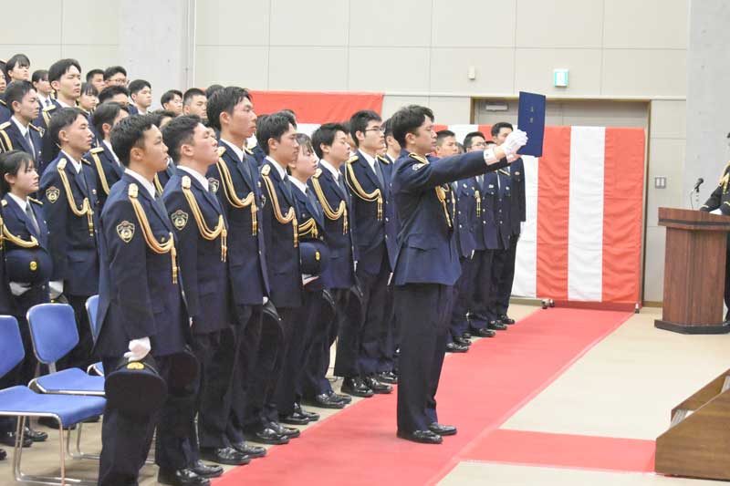 東金市の県警察学校(青木洋校長)で6日、長期課程の初任科第328期生の卒業式が行われ、同校で警察業務を約10カ月間学んだ109人(うち女性26人)が第一線へ送り出された。卒業生代表は答辞で「警察学校で育んだ強い心で...