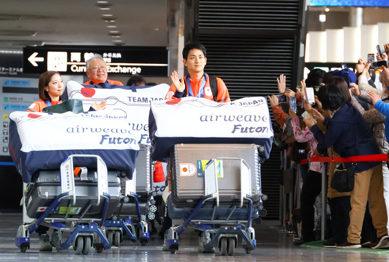 ミラノ・コルティナ冬季五輪で史上最多24個のメダルを獲得した日本選手団が24日、成田空港着の臨時便で帰国した。フィギュアスケート女子シングルで初出場ながら銅メダルに輝いた17歳の中井亜美選手(TOKIOインカラミ)=勇志国際高千葉、市川市・南行徳中出=らメダリストが、到着ロビーで熱狂するファン約400人に出迎えられた。