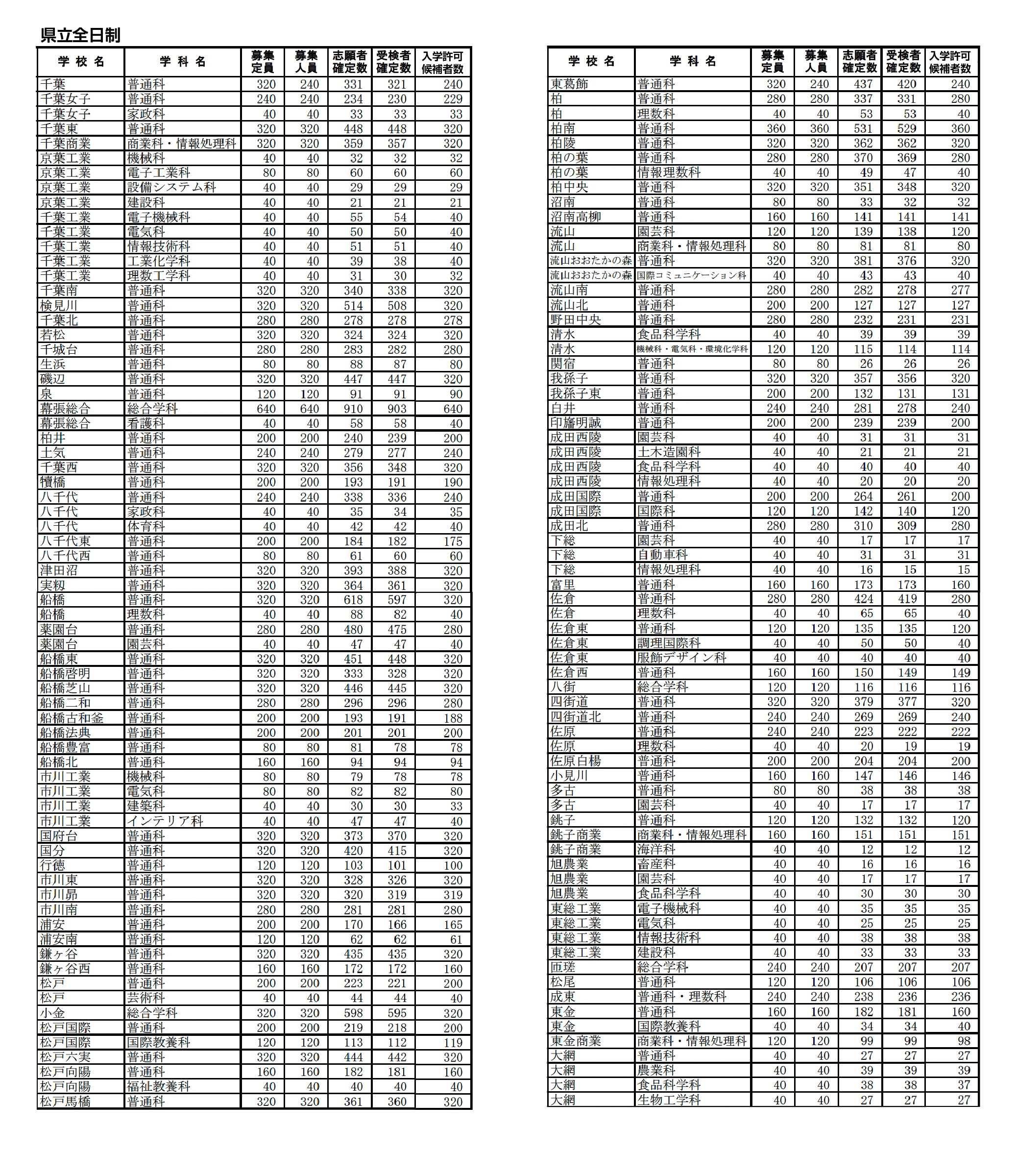 千葉県内の公立高校入試の合格発表が3日、全校で一斉に行われた。県内全域で雨が降る中、各校で合格者の受験番号が張り出され、合格した受験生はこれまでの努力の成果を喜んだ。