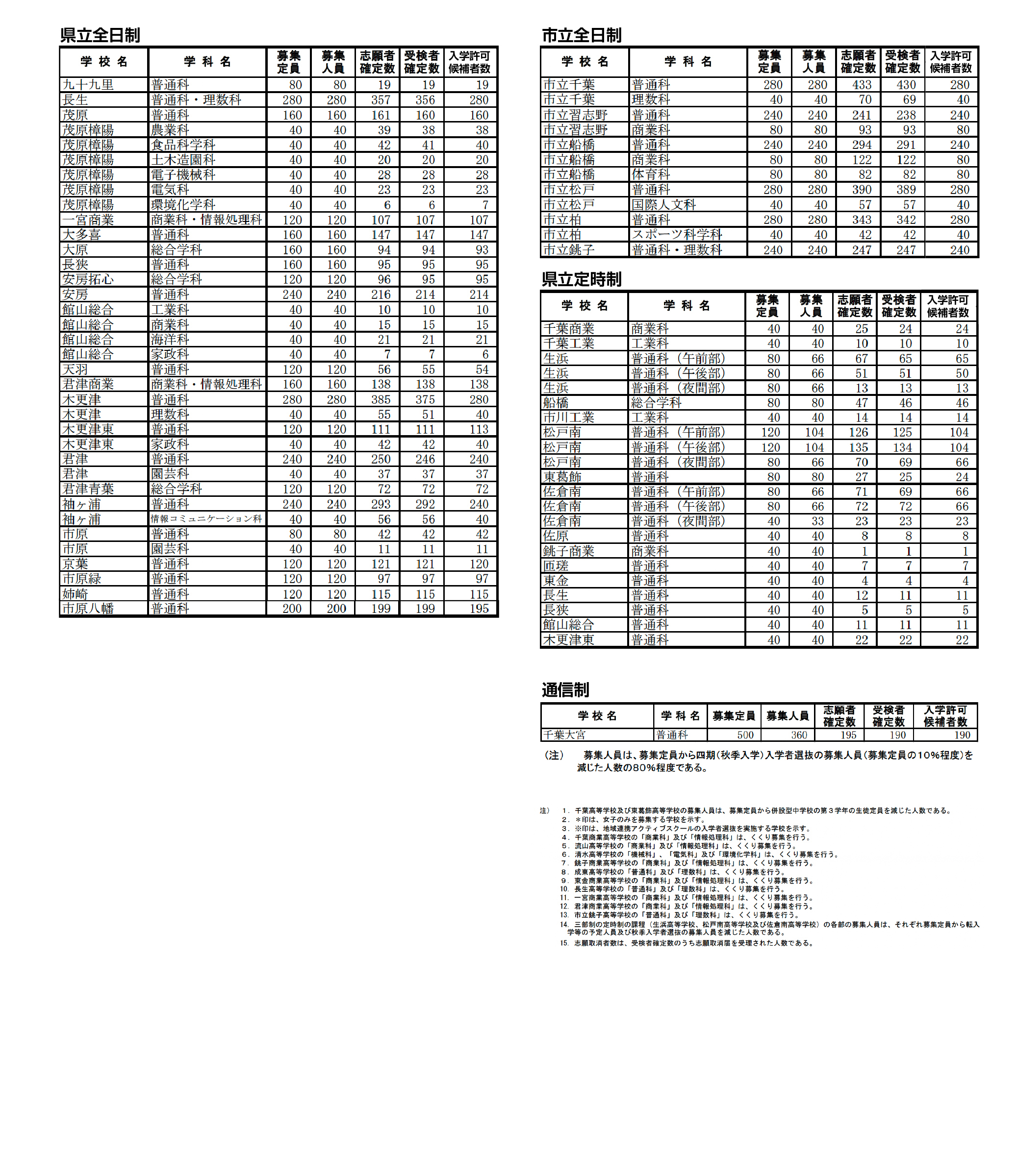 千葉市中央区の県立千葉高校では午前8時40分ごろから、傘を差した受験生や保護者らが正門近くの掲示板前に集まり、掲示板にかかった幕が下ろされるのを待った。午前9時ちょうどに合格者の番号が示されると、合格した受験生は「よっしゃ受かった」「(受験番号が)あった」と歓声。友人や保護者と喜びを分かち合ったり、掲示された自身の受験番号をスマートフォンで撮影したりして、春からの学校生活に思いをはせた。