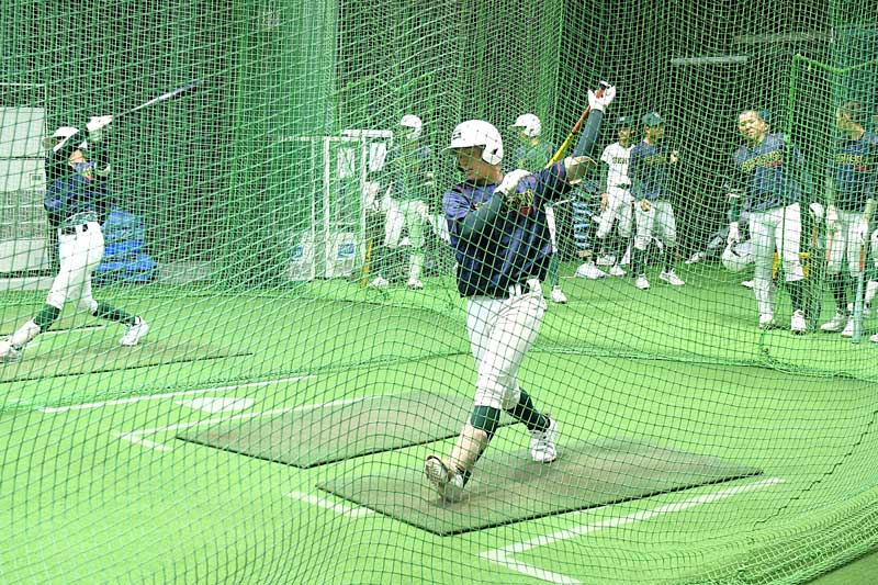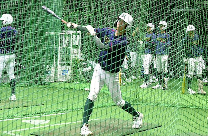 順延が決まると、専大松戸ナインは室内練習場で野手...
