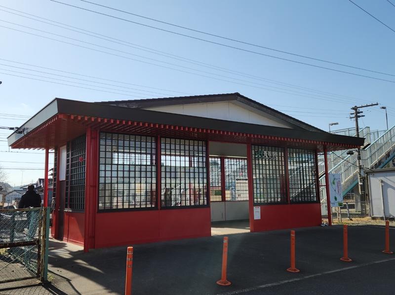 香取駅は赤色の駅舎が特徴的な無人駅です。今回は香取神宮への参詣道を歩きます。