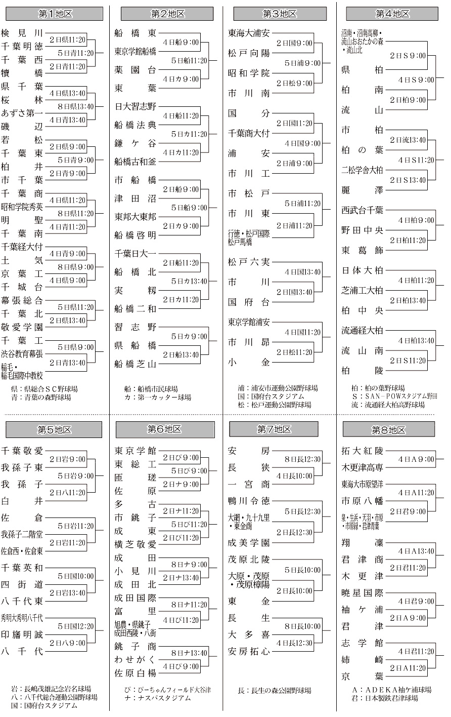 高校野球の第79回春季千葉県大会予選が4月2~8日、県総合スポーツセンター野球場などで行われる。154校135チームが8地区に分かれて対戦。勝ち上がった40チームと予選免除の8チームが本大会(4月18日開幕、5月3日決勝)で春の県王者を目指す。