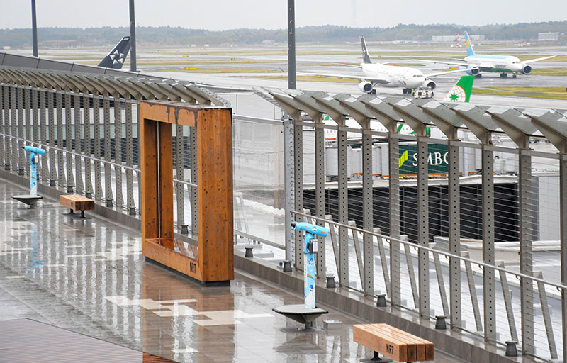 新エリアは「シキサイガーデン-シーズナルカラーズ」。成田国際空港会社(NAA)が展望デッキ約3千平方メートルとフロア約5千平方メートルで昨年4月から工事を進めた。事業費約25億円の大がかりな刷新だ。