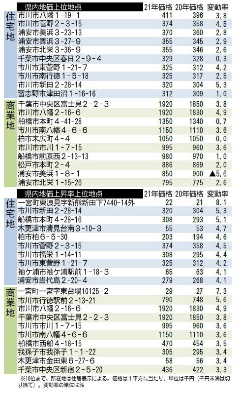 #速報 #千葉県 2021/9/21 6:00 (4/15 14:09更新) 有料記事 保存 千葉県は21日、7月1日時点の2021年地価調査(基準地価)の結果を発表した。県内全体の平均は前年と比べ... この記事は 有料記事です 残り1130文字(全文1183文字) 関連記事/あわせて読みたい 【基準地価】千葉県平均0・1%↗ コロナで上昇率鈍化 商業地減速、住宅地6年ぶり↘ 一宮に“五輪特需” 基準地価 上昇率トップ3に急浮上 サーファー施設続々進出 基準地価、3年ぶりマイナス コロナ禍で需要急失速 千葉県平均0.7%5年連続上昇 地方圏は下落増で二極化 19年基準地価 5年連続下落も回復顕著 総武線沿線、軒並み上昇 千葉県内基準地価 #速報 #千葉県 前の記事惣菜店からまち活性化 佐原家守舎(香取市)【輝く!千葉の企業 日本政策金融公庫レポート】(80)次の記事新型コロナ拡大で帰省自粛… 高齢者見守り代行します オンラインで情報共有 ヘルパーリンク (千葉市花見川区)