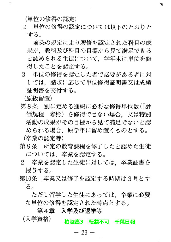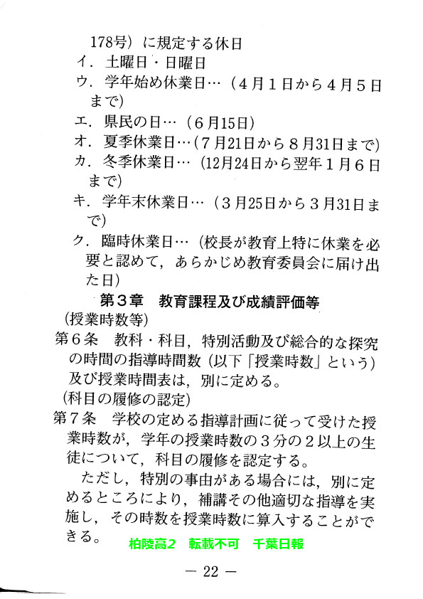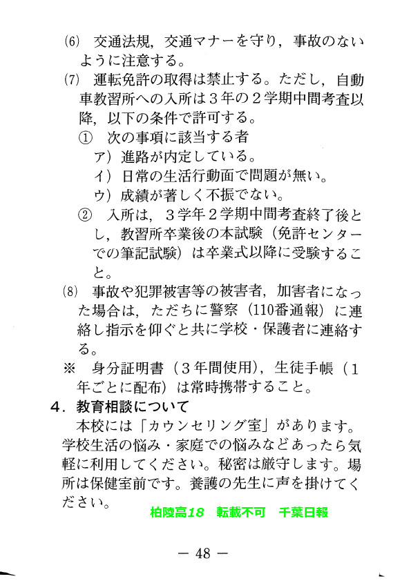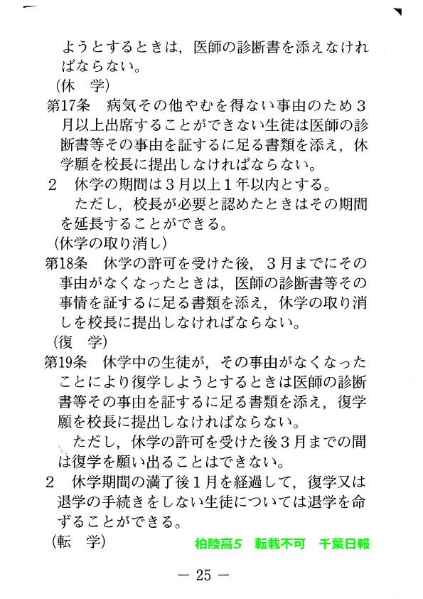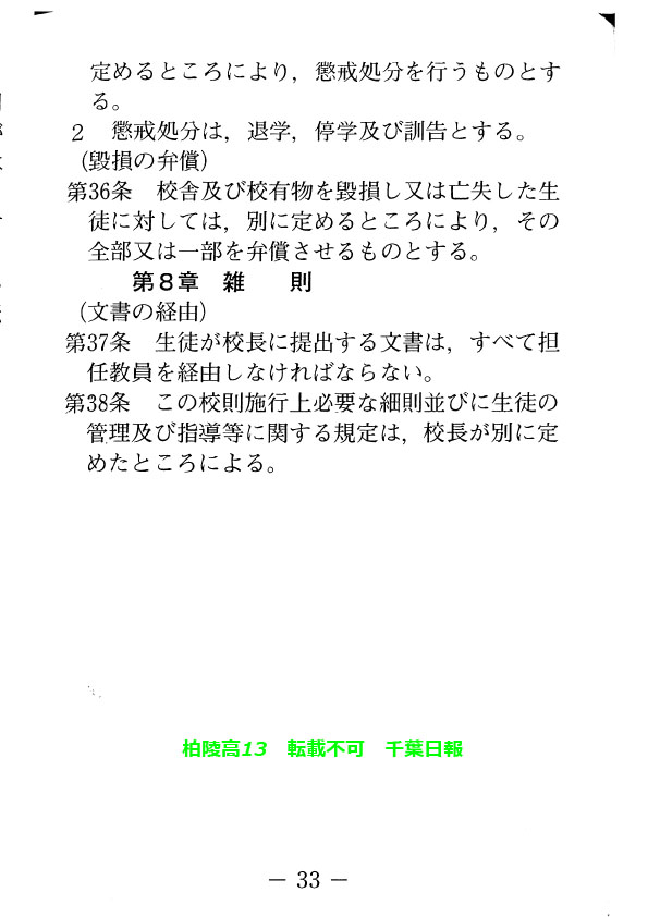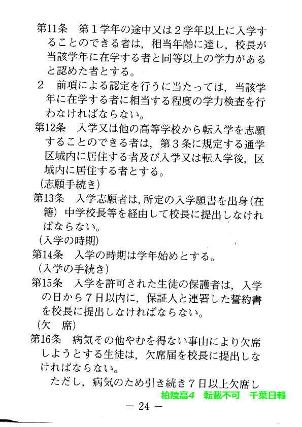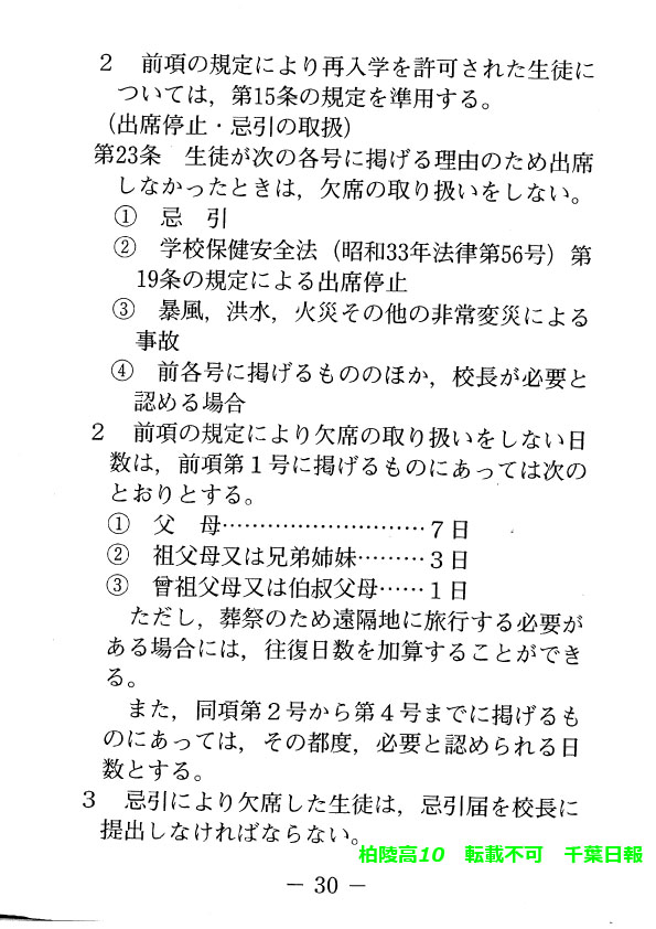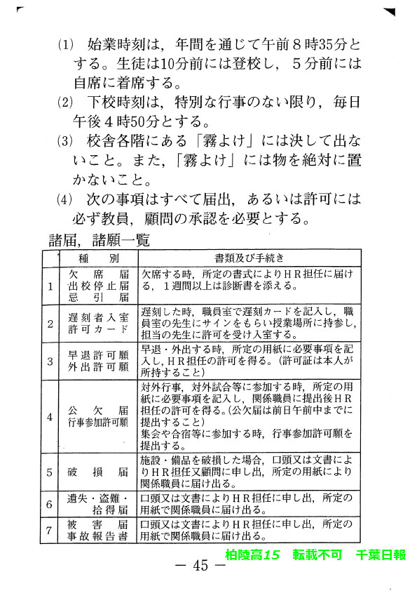 このページは、千葉県立柏陵高校(柏市)のルールを定めた生徒指導規程、いわゆる「校則」を掲載しています。