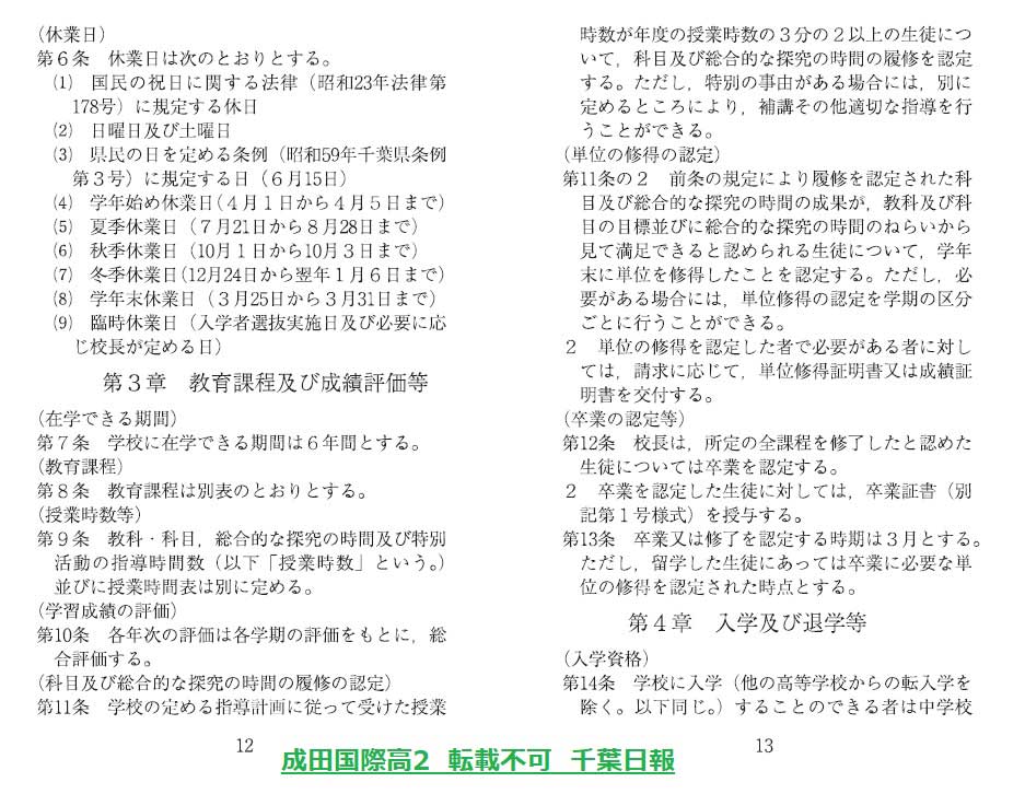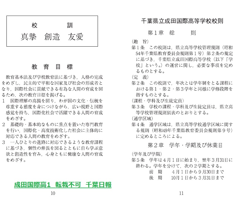 このページは、千葉県立成田国際高校(成田市)のルールを定めた生徒指導規程、いわゆる「校則」を掲載しています。