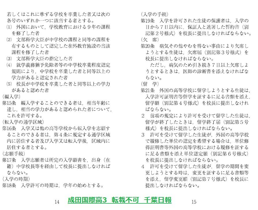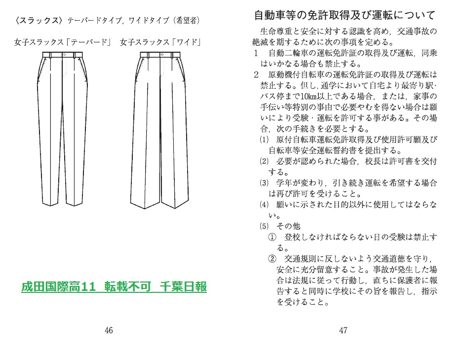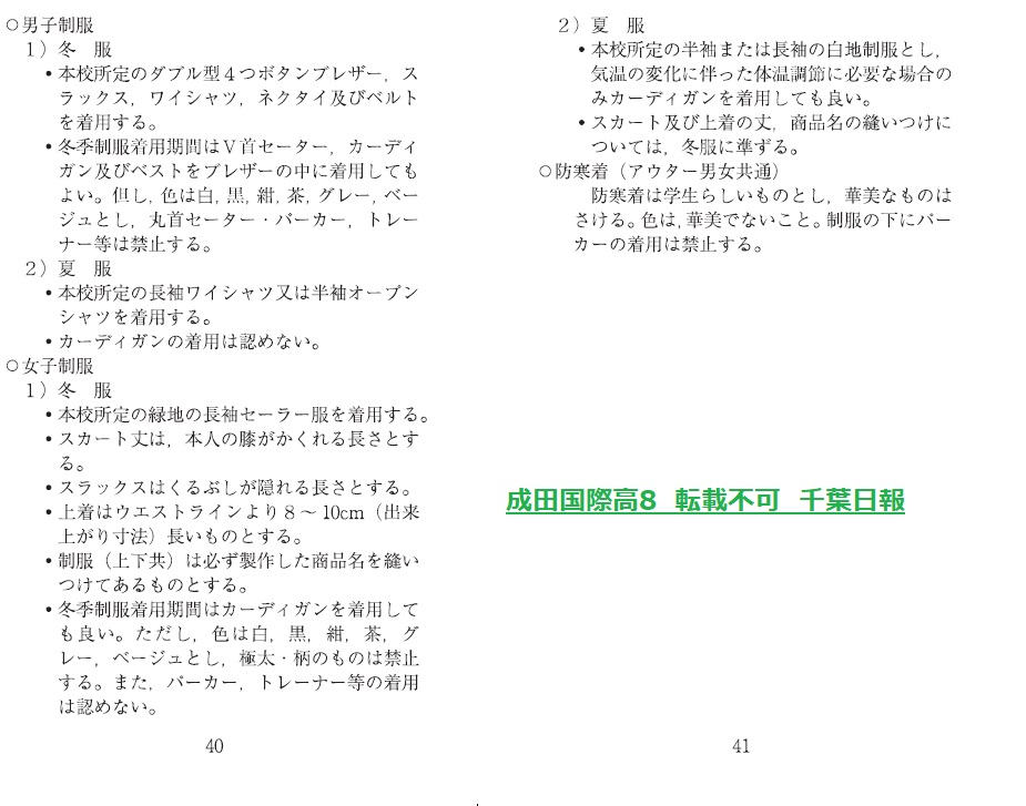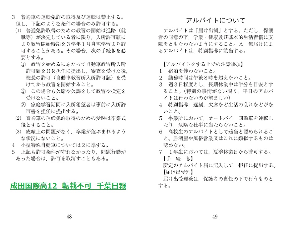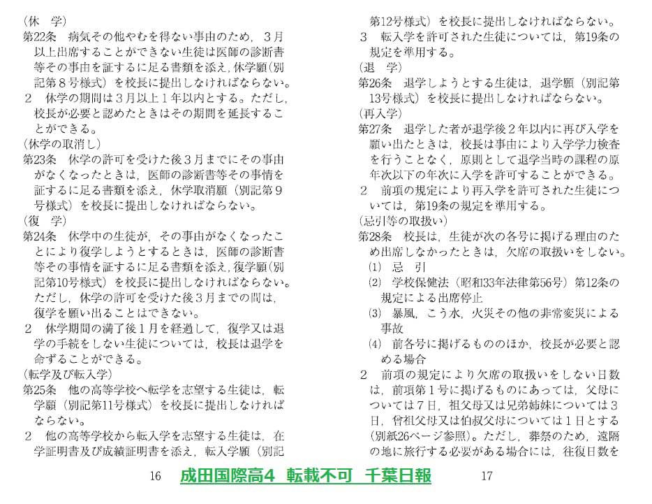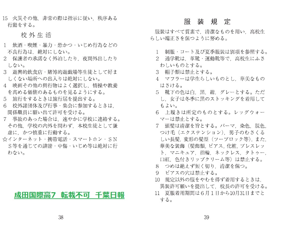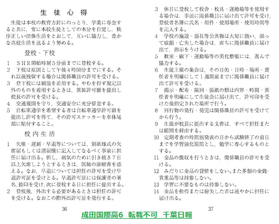学校名 : 千葉県立成田国際高校 住 所 : 成田市加良部3-16 掲載内容:校則、生徒心得注意点