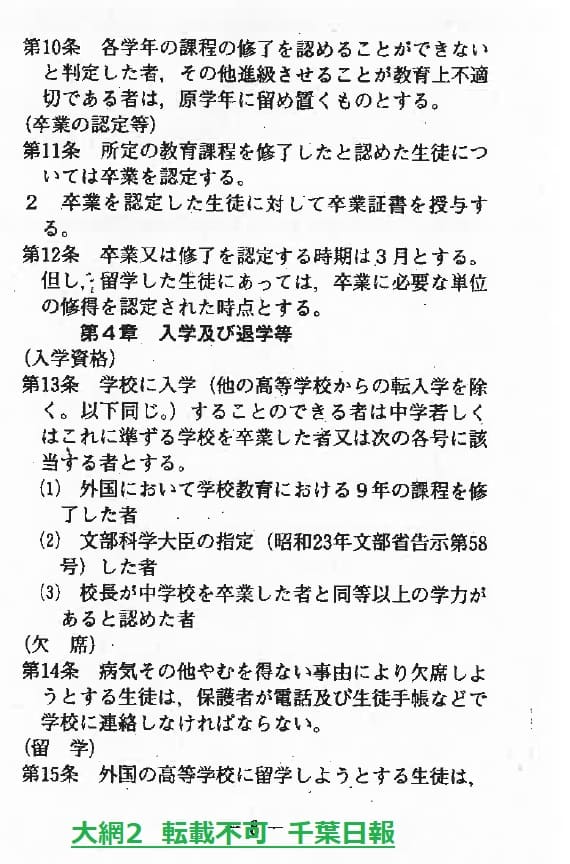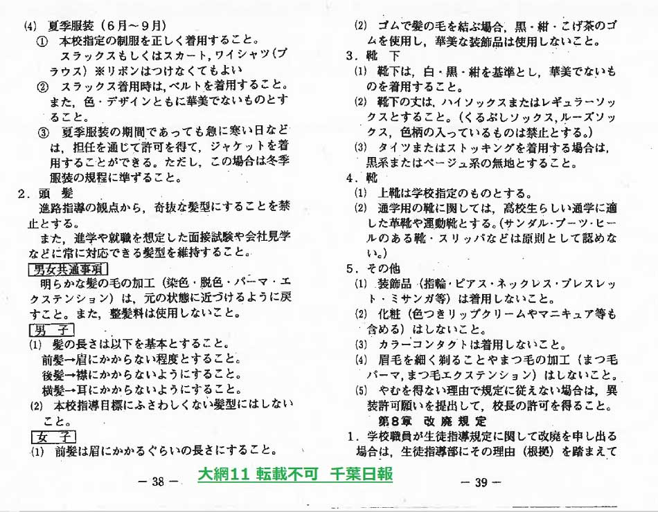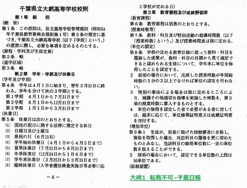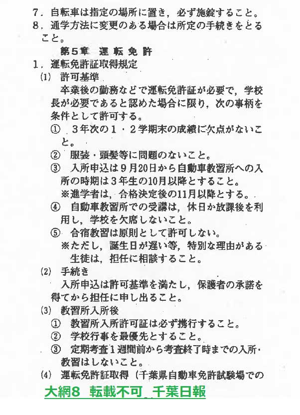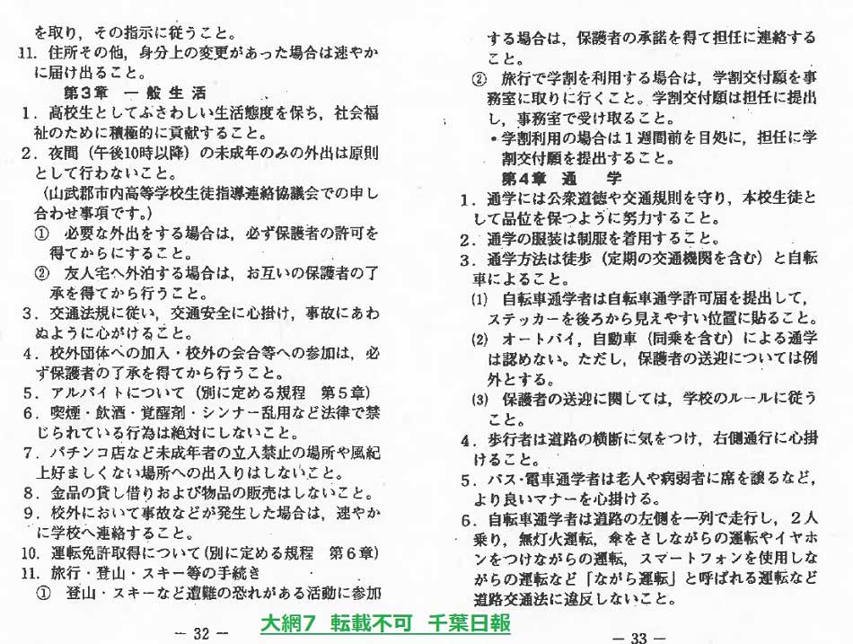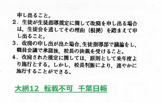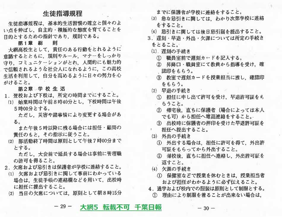 学校名 : 千葉県立大網高校 住 所 : 大網白里市大網435-1 掲載内容:校則、生徒指導規程注意点