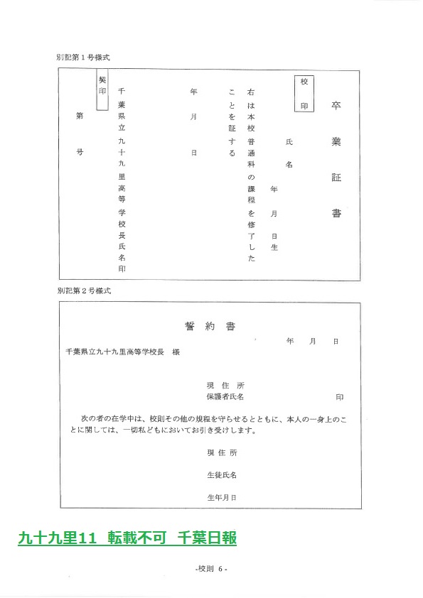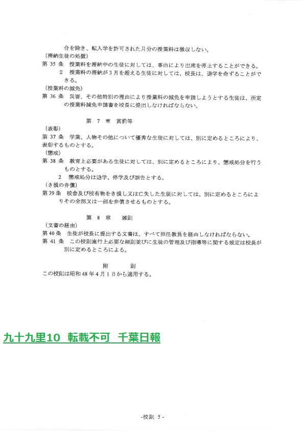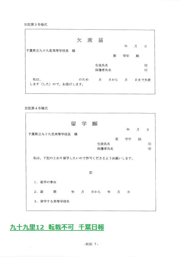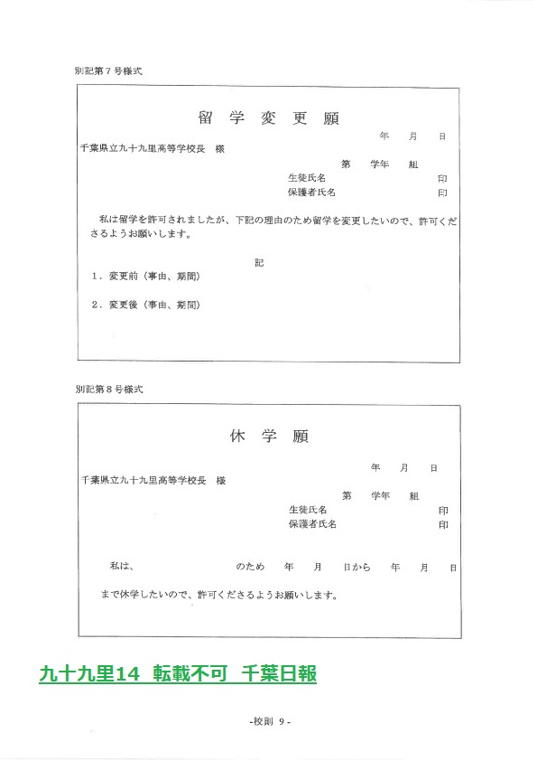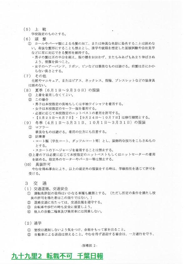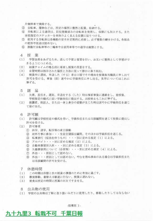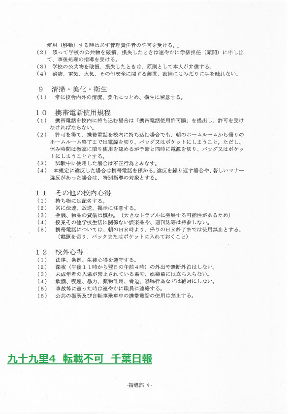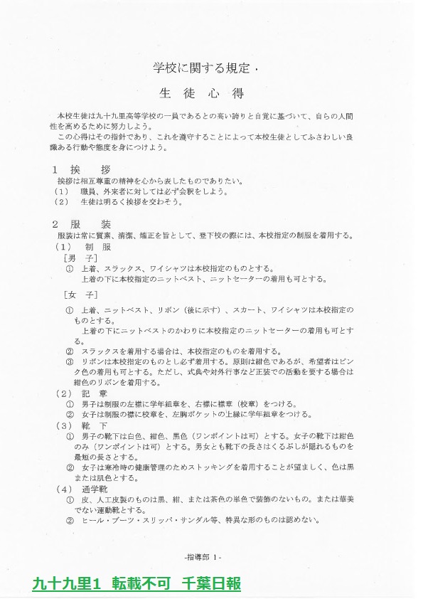 学校名 : 千葉県立九十九里高校 住 所 : 九十九里町片貝1910 掲載内容:生徒心得、校則注意点