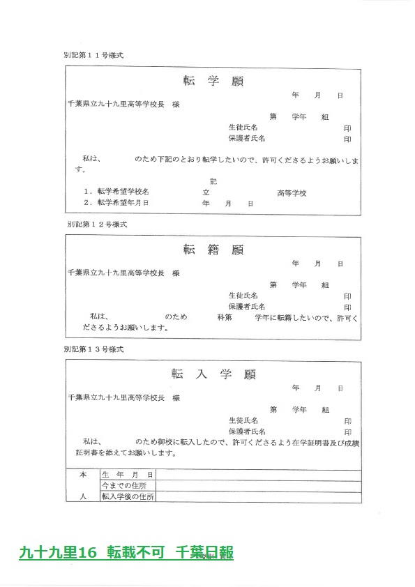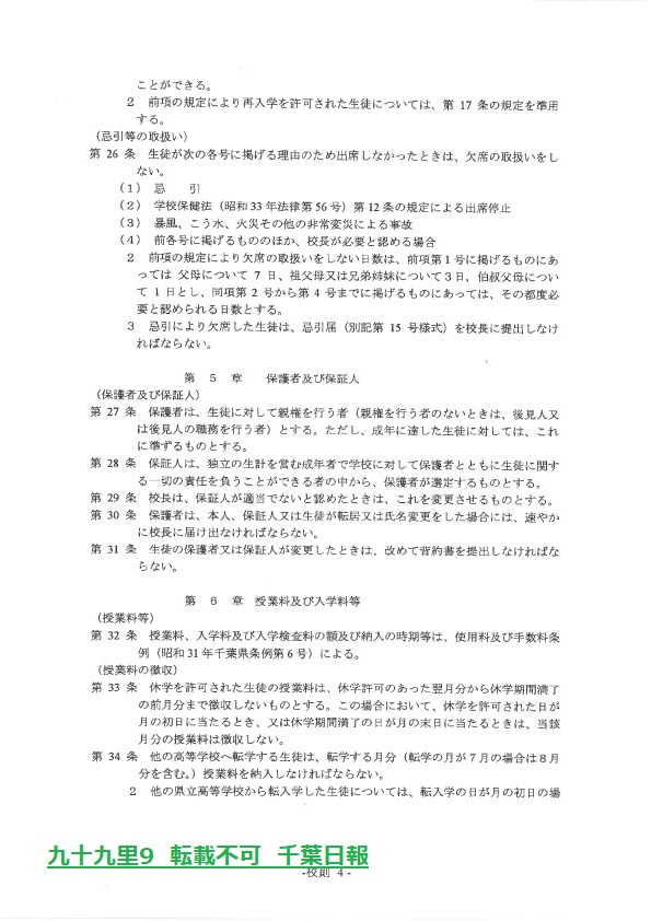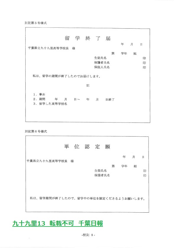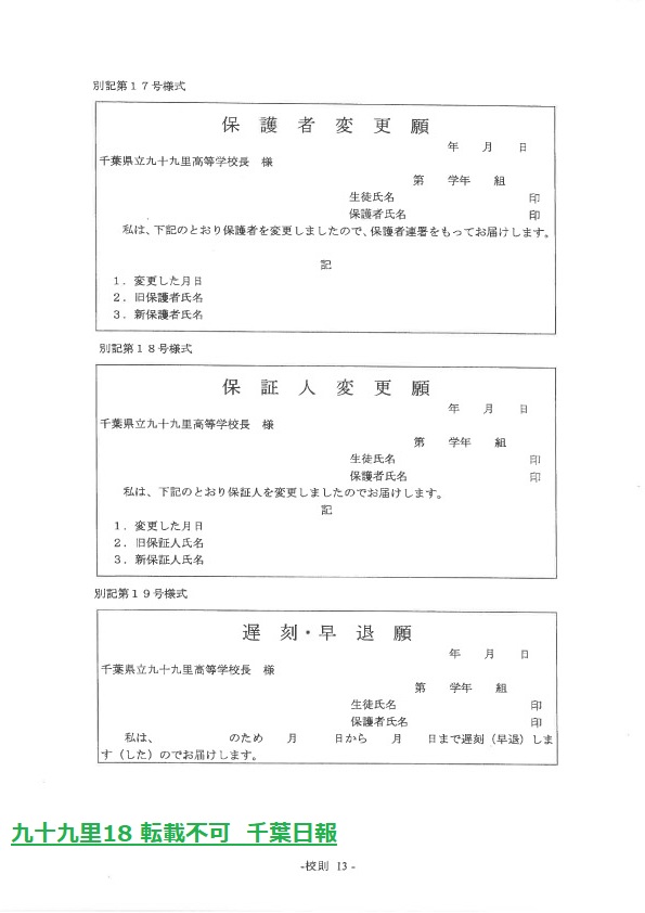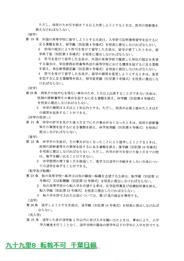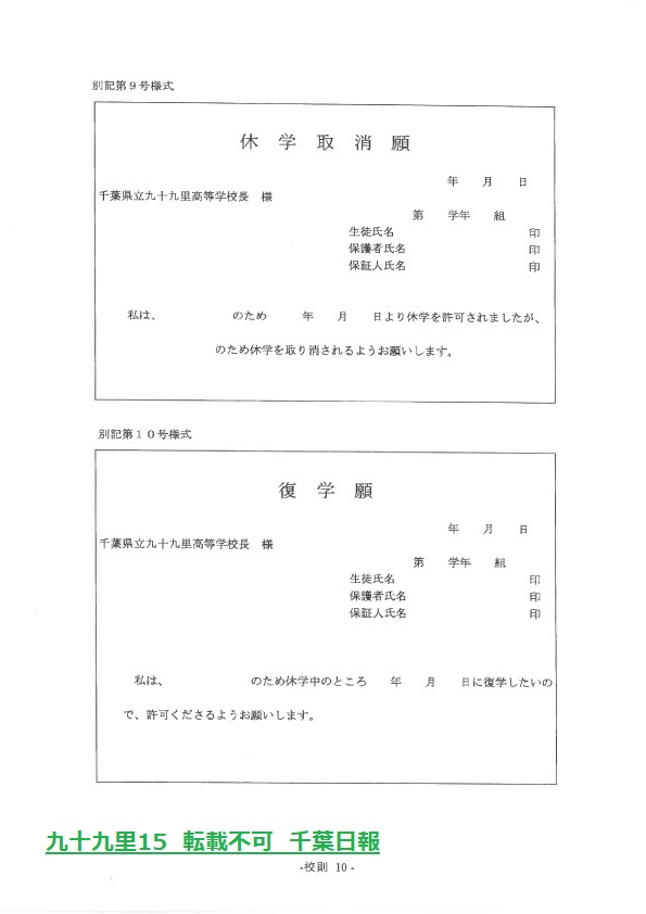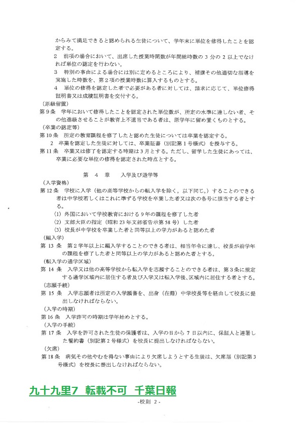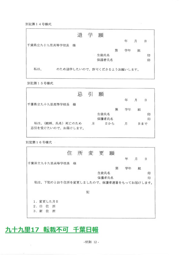 学校名 : 千葉県立九十九里高校 住 所 : 九十九里町片貝1910 掲載内容:生徒心得、校則注意点