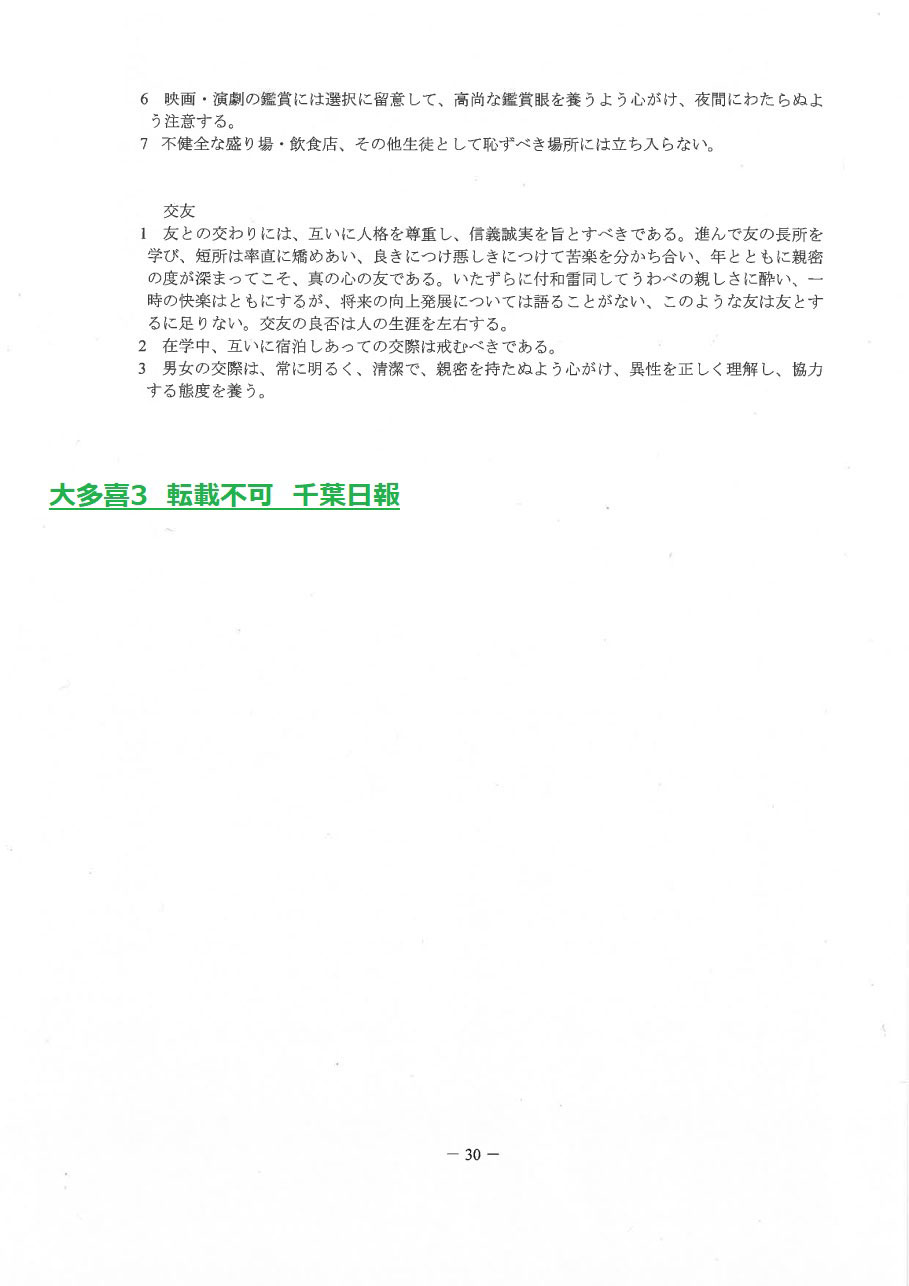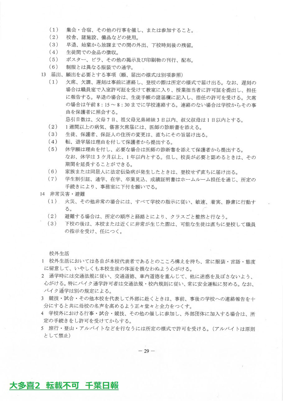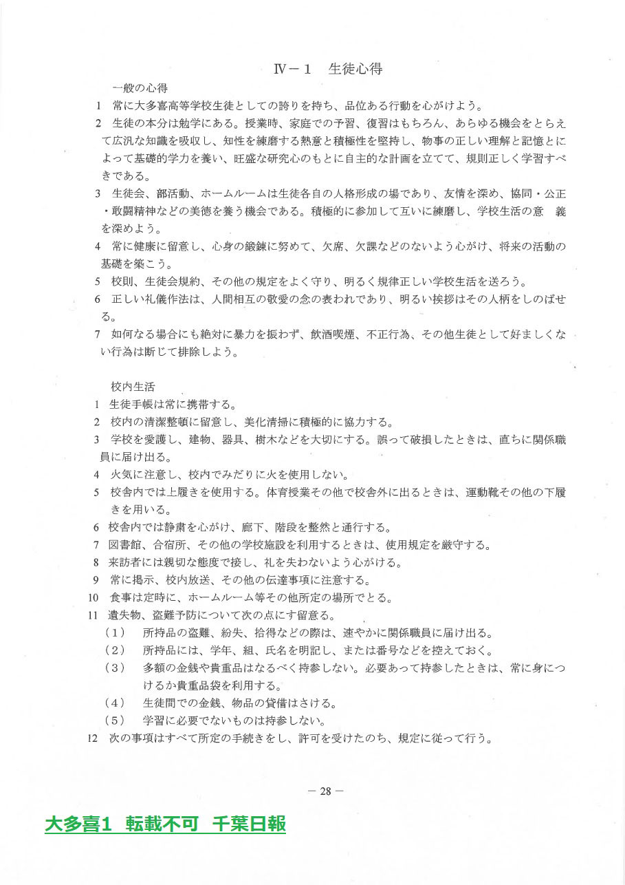 このページは、千葉県立大多喜高校(大多喜町)のルールを定めた生徒指導規程、いわゆる「校則」を掲載しています。
