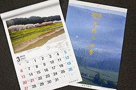 県内各地の四季折々の自然をテーマにした弊社オリジナルのフォトカレンダーで、縦51センチ、横36センチの大きさで、オールカラー、月別13ページ、書き込み欄付。