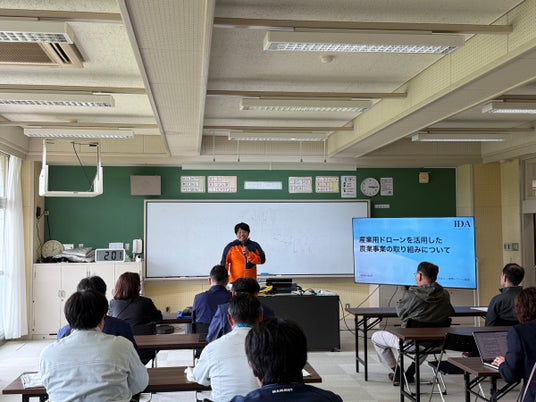 当日のプログラムは、座学と実機デモンストレーションの2部構成で実施されました。農業ドローン導入の背景や実務上留意すべきポイントについて、長年の現場経験に基づいた実践的な解説が行われました。